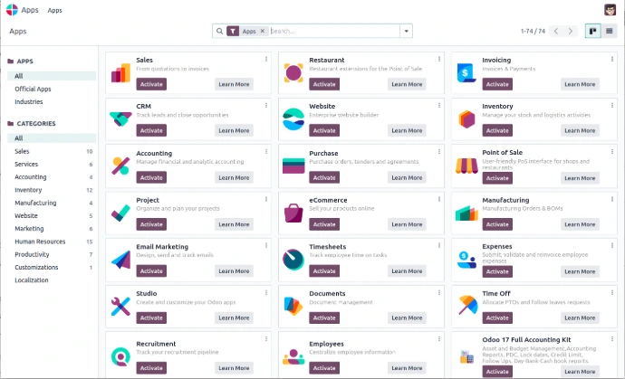 سواء كنت في بداية طريقك أو تبحث عن حلول تقنية سريعة، نقدم لك باقات "أودو" (Odoo) مسبقة الإعداد وجاهزة للاستخدام المباشر في مختلف القطاعات؛ وهي الحل الأمثل للتنفيذ السريع وبأقل تكاليف تخصيص ممكنة.